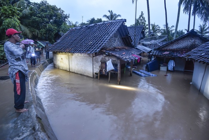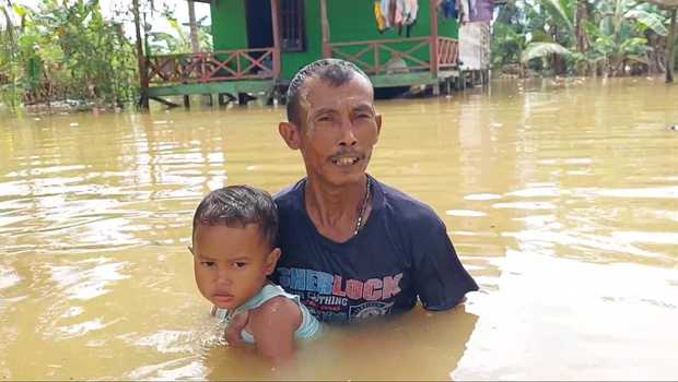 Korban banjir melanda sampai menenggelamkam rumah setempat, banjir setinggi orang dewasa